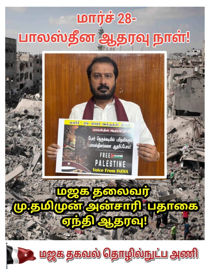 தமிழ்நாட்டின் மனிதநேய ஜனநாயக கட்சியும் இந்த ‘பாலஸ்தீன ஆதரவு நாள்’-ஐக் கடைப்பிடிக்கிறது.