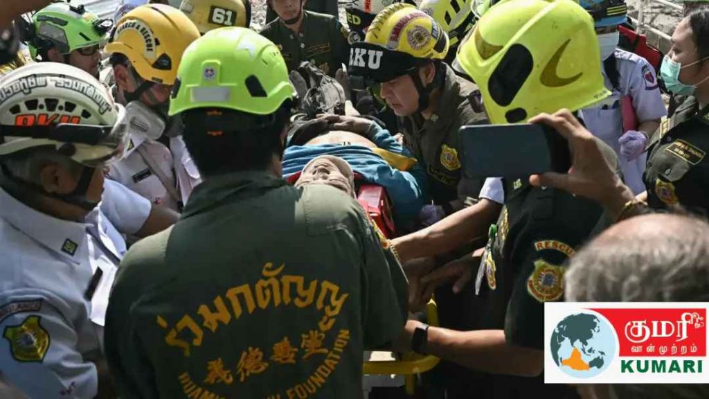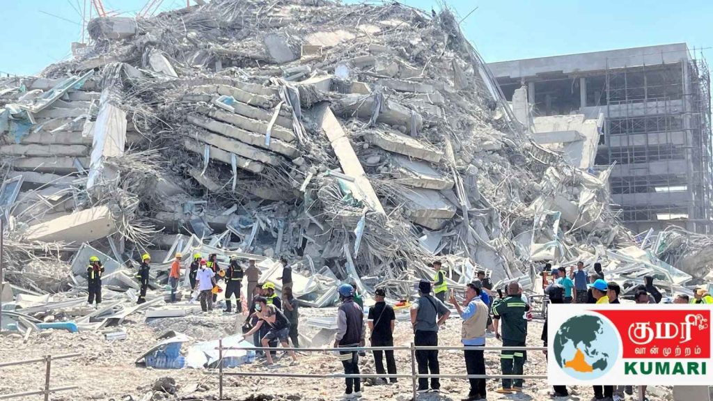 மியான்மரை மையமாகக் கொண்ட 7.7 ரிக்டர் அளவிலான நிலநடுக்கத்திற்குப் பிறகு, தாய்லாந்து தலைநகரின் வடபகுதியில் எழுப்பப்பட்ட இக்கட்டடம் சில நொடிகளில் சரிந்து உருக்குலைந்து, நொறுங்கிய அப்பளம் போலானது.