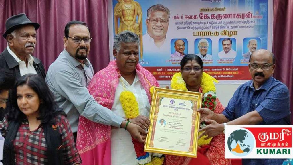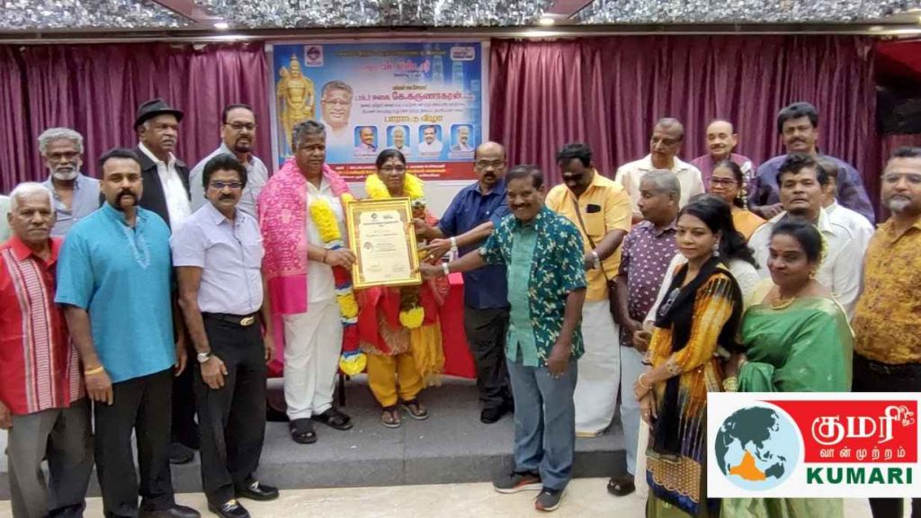 விழாவிற்கு உலகத் தமிழ் பண்பாட்டு இயக்கத்தின் மலேசியக் கிளைத் தலைவர் டத்தோ கோபாலகிருஷ்ணன் தலைமை தாங்கி , டாக்டர் கருணாகரனுக்கு பாராட்டுரை நிகழ்த்தி இவ்விருதினை வழங்கி சிறப்பித்தார்.