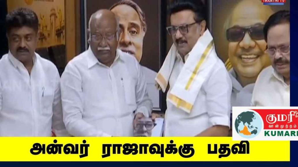 தமிழக அரசியலில் பாரம்பரியமிக்க திமுகவில் இலக்கிய அணிச் செயலாளர் பதவி இராமநாதபுரம் நாடாளுமன்றத் தொகுதியின் மேநாள் உறுப்பினரும் மேநாள் அமைச்சருமான அன்வர் ராஜாவுக்கு இப்பொழுது வழங்கப்பட்டுள்ளது.