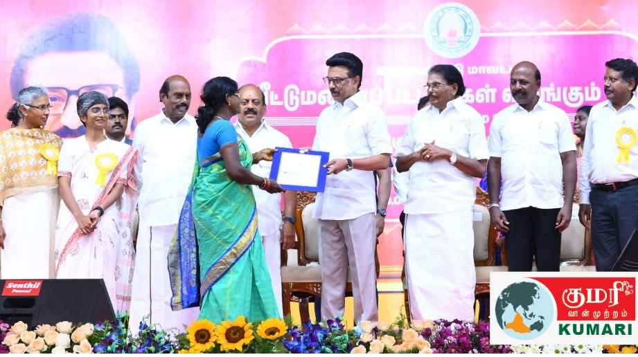 இப்படி, மே 2021-லிருந்து, தற்போது வரைக்கும் வழங்கப்பட்டிருக்கும் மொத்த பட்டாக்களின் எண்ணிக்கை எவ்வளவு தெரியுமா? 17 இலட்சத்து 74 ஆயிரத்து 561 பேருக்கு பட்டா வழங்கியிருக்கிறோம்! அதாவது பல இலட்சம் குடும்பங்களின் கனவை நிறைவேற்றியிருக்கிறோம்! இதில், இந்த செங்கல்பட்டு மாவட்டத்தில் மட்டும், 41 ஆயிரத்து 858 பேருக்கு பட்டா வழங்கியிருக்கிறோம். இந்த மகிழ்ச்சியோடுதான், இதன் தொடர்ச்சியாக இன்றைக்கு இந்த மாபெரும் விழாவில், ஆயிரத்து 672 கோடியே 52 இலட்சம் ரூபாய் மதிப்பிலான வீட்டுமனைப் பட்டாக்களை 20 ஆயிரத்து 21 பயனாளிகளுக்கு நான் வழங்கியிருக்கிறேன்!