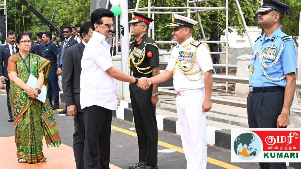 இங்குப் பட்டொளி வீசிப் பறக்கும் நம் தேசியக் கொடியை, நான் மட்டுமல்ல – அனைத்து மாநில முதலமைச்சர்களும் இந்த நாளில் ஏற்றுவதற்கான ஜனநாயக உரிமையை 1974-ஆம் ஆண்டு இந்தியாவின் அனைத்து முதலமைச்சர்களுக்கும் பெற்றுத் தந்தவர் நம்முடைய முத்தமிழறிஞர் கலைஞர் அவர்கள்.