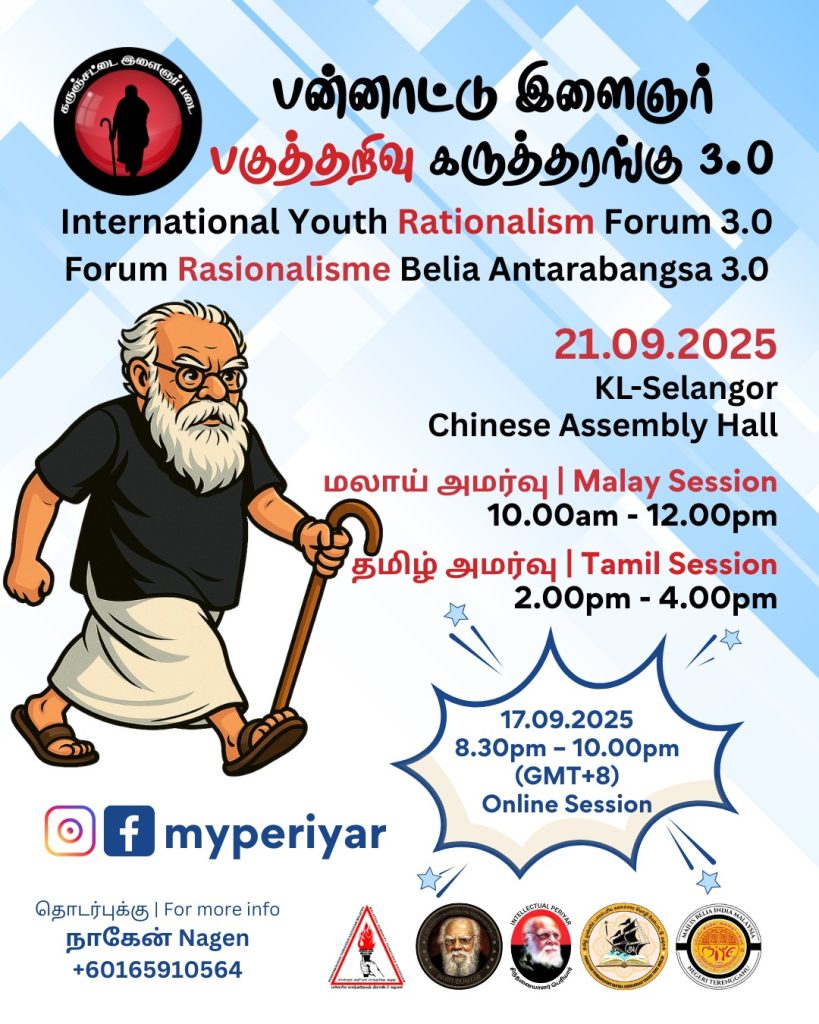 தந்தை பெரியாரின் பிறந்த நாளான செப்டம்பர் 17-இல் , இயங்கலை வாயிலாகப் பன்னாட்டுப் பேச்சாளர்கள் கலந்து கொள்ளும் நிகழ்வு நடைபெறும். அதைத் தொடர்ந்து அந்த வார இறுதியில், 21 செப்டம்பர் 2025, ஞாயிற்றுக்கிழமை தலைநகர் கோலாலம்பூரில் அரங்கமொன்றில் நேரடி நிகழ்ச்சியாக நடைபெறும்.