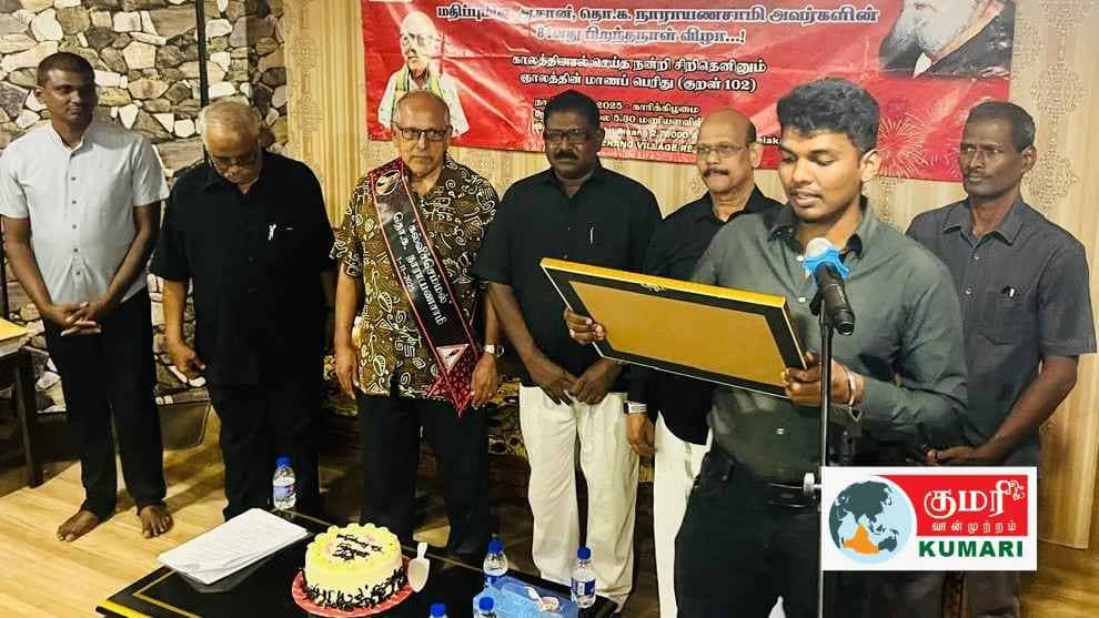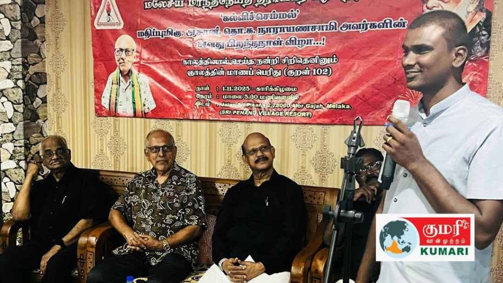 விழாவில், ஏற்புரை வழங்கிய ‘கல்விச்செம்மல்’ ஐயா தொ.க. நாராயணசாமி, நாட்டில், இந்தியர்கள் குறிப்பாகத் தமிழர்கள் எதிர்நோக்கும் சிக்கல்களைப் பற்றியும்; பள்ளி, கல்லூரிகளின் நமது பிள்ளைகள் எதிர்கொள்ளும் பல்வேறு விதமான சமூகச் சீர்கேடுகள் பற்றியும் விரிவாக எடுத்துரைத்தார்.