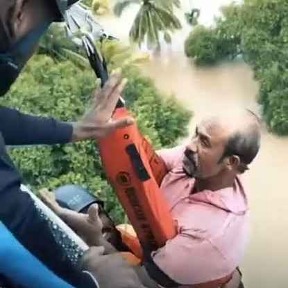 வெள்ளத்திலிருந்து தப்பிக்கும் பொருட்டு தென்னை மரத்தில் ஏறி தவித்த அவரை, ஒரு நாளுக்குப் பிறகு நேற்று வெள்ளிக்கிழமை இலங்கை விமானப் படை மீட்டது.