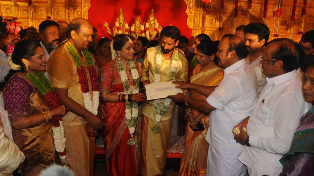 திருப்பத்தூர் ஆறுமுகம் பிள்ளை- சீதையம்மாள் கல்லூரி வளாகத்தில் தனி பந்தலிட்டு, மேடை அமைத்து நடைபெற்ற இத்திருமண விழாவில் முக்கிய அரசியல்-சமூகத் தலைவர்கள், திரையுலகைச் சேர்ந்தவர்கள் , பொது மக்கள் என திரளானோர் கொண்டு மணமக்களை வாழ்த்தினர்.