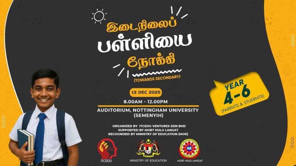 ITCEDU VENTURES SDN BHD என்ற நிறுவனத்தின் சார்பில் நடைபெற உள்ள இந்த நிகழ்ச்சியில் சிலாங்கூர், கோலாலம்பூர் கூட்டுரசுப் பிரதேச மாநிலங்களுடன் வெளி மாநில இந்திய மாணவர்களும் பெற்றோரும் இதில் பங்கு பெற்று பயனடையலாம் என்று இந்த நிகழ்ச்சியின் ஏற்பாட்டுக் குழுவினர் தெரிவிக்கின்றனர்.