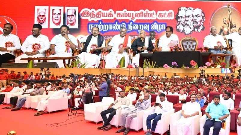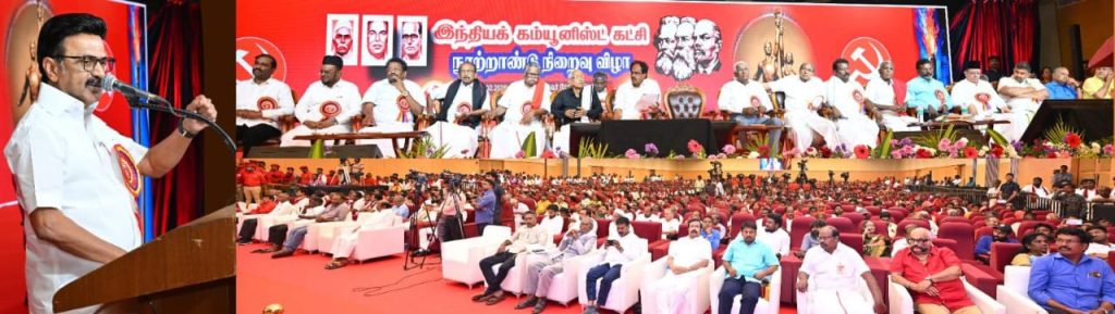 நூற்றாண்டைக் கொண்டாடும் இந்த நேரத்தில், இந்தியக் கம்யூனிஸ்ட் கட்சியின் தேசிய தலைமைக்கும் – தமிழ்நாட்டில் இயக்கத்தை வலிமையாக நடத்திக் கொண்டிருக்கும் தோழர்களுக்கும் – திராவிட முன்னேற்றக் கழகத்தின் தலைவராக மட்டுமல்ல; திராவிட மாடலால் தமிழ்நாட்டை வளர்த்தெடுக்கும் முதலமைச்சராக மட்டுமல்ல; உங்களில் ஒருவனாக நான் மனதார வாழ்த்துகிறேன்.