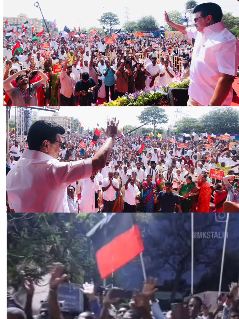 வெல்வோம் ஒன்றாக!!! என்று தி மு க தலைவர் மு க ஸ்டாலின் முழங்கினார்.