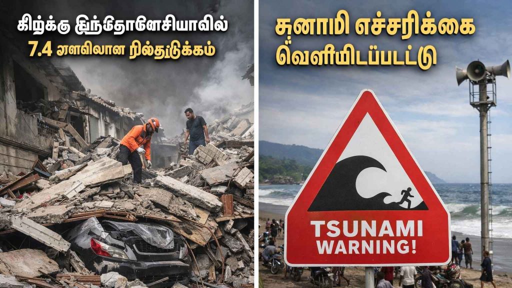 ஜகார்த்தா: கிழக்கு இந்தோனேசியாவின் வரலாற்றுச் சிறப்புமிக்க டெர்னேட் தீவு அருகே இன்று அதிகாலை 7.4 அளவிலான சக்திவாய்ந்த நிலநடுக்கம் ஏற்பட்டது. மாலுக்கா கடலில் 35 கி.மீ. ஆழத்தில் ஏற்பட்ட இந்த அதிர்வால் ஆழிப் பேரலை – சுனாமி எச்சரிக்கை வெளியிடப்பட்டுள்ளது.