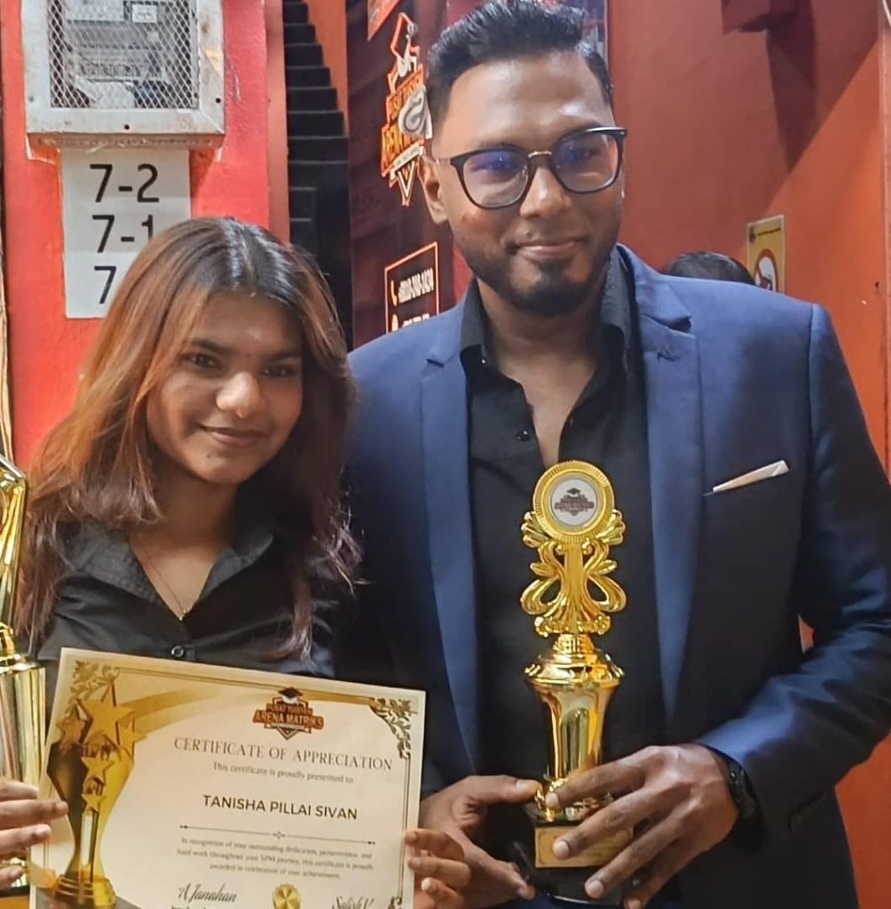 சிலாங்கூர் மாநில ஆட்சிக் குழு உறுப்பினர் பாப்பா ராயுடு தலைமையில் நடைபெற்ற இந்த விழாவில் இவருக்கு ஒரே நேரத்தில் இரண்டு சாதனையாளர் விருது வழங்கப்பட்ட போது மாணவர்கள் பெரும் உற்சாகத்தில் திளைத்தனர்.