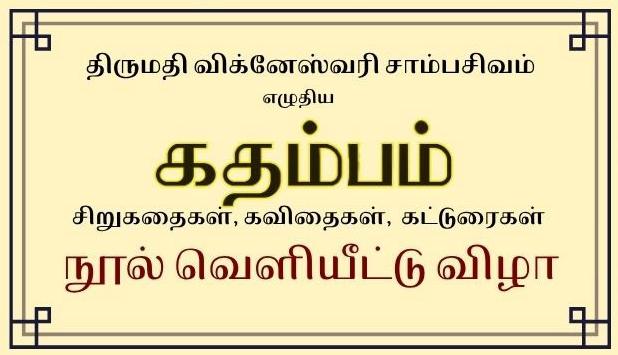 தமிழ் இலக்கிய ஆர்வலர்களும், எழுத்தாளர்களும் இந்த நூல் வெளியீட்டு விழாவில் கலந்து சிறப்பிக்கும்படி ஏற்பாட்-டாளர்கள் அன்புடன் கேட்டுக் கொள்கின்ற-னர்.