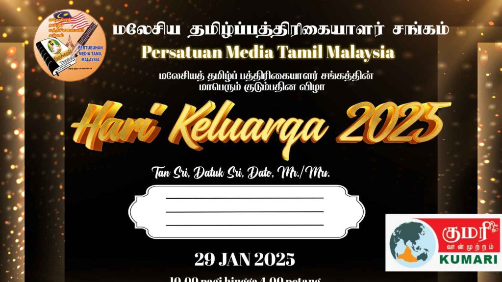 மலேசியத் தமிழ் பத்திரிகையாளர் சங்க குடும்ப தின விழா, நாளை ஜனவரி 29ஆம் நாள், காலை 10:00 மணி அளவில் Pusat Komuniti, Taman Koperasi Polis-2, 68100 Batu Caves, Kuala Lumpur என்னும் இடத்தில் நடைபெற இருக்கிறது. இதற்கான பணிகள், விழா ஏற்பாட்டுக் குழு தலைவர் ஜீவா தலைமையில் மிக தீவிரமாக நடைபெற்று வருகின்றன.